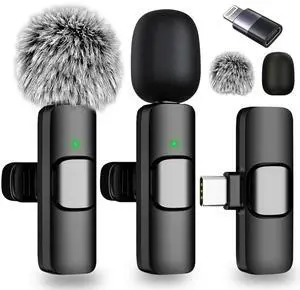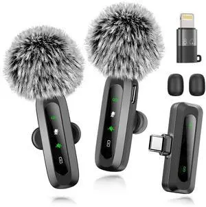 Aoiutrn Wireless Lavalier Microphone for iPhone and USB C, 2 in 1 Mini Clip-on Wireless Lapel Mics Compatible with iPhone,iPad, Android for Video Recording,YouTube, Interview, TikTok, Vlog