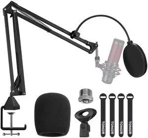 Microphone Arm Stand, Adjustable Suspension Boom Scissor Mic Stand with Pop Filter, 3/8" to 5/8" Adapter, Excellent Compatibility, Mic Clip, Upgraded Heavy Duty Clamp, 35 cm +35 cm, T20