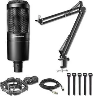 StreamEye AT2020 Cardioid Medium-Diaphragm Condenser Microphone with AT8458a Microphone Shockmount, BOOMARM1, XLR Cable and Cable Tie
