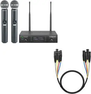 Phenyx Pro Wireless Microphone System,2x100 Adjustable UHF Channels(PTU-71-2H) Bundle with 3Ft XLR Snake Cable