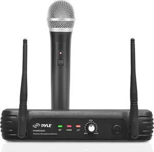 Pyle UHF Wireless Microphone System - Professional Dynamic Wireless Mic Set, handheld mic and receiver, power adapter, Audio Cable - Great for PA, Conference, Karaoke, and Dj Party