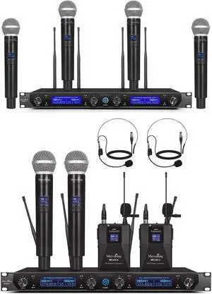 MUSYSIC Pro Wireless Microphone System Advanced SM Technology, 1/4" TRS & XLR Output 8 Channel UHF Receiver 4 Handheld Wireless Microphones 4 Lapel Lavalier/Body Pack 4 Headset - MU-U8-HL