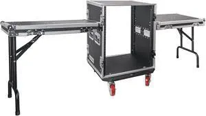 Sound Town 12U PA DJ Pro Audio Rack/Road ATA Case with 2U Drawer, 11U Slant Mixer Top, DJ Work Table, Casters, Pro Tour Grade (MR-DR12UT)