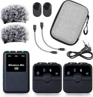 DW20 Wireless Lavalier Microphone, Noise Cancellation, Safety Audio Track, 328' Range, Wireless Lapel Microphone for Camera, iPhone, Android, PC, YouTube, Interviews, Vlogs, Live-Streaming