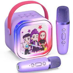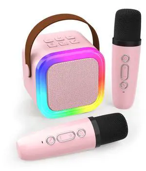 Portable Bluetooth Karaoke Speaker with 2 Wireless Microphones & LED Lights for Kids Birthday Parties