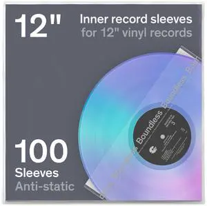 Boundless Audio Vinyl Record Sleeves - 100 x Premium Vinyl Inner Sleeves with Anti-Static Rice Paper & HDPE - Archival 3-Layer Record Covers for 12" LPs - Acid-Free Polylined Album Covers for Storage