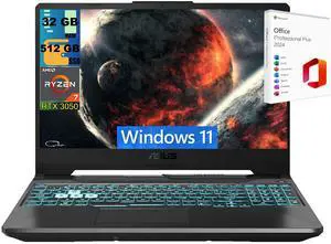 ASUS TUF A15 Gaming Laptop, 15.6" FHD 144Hz, AMD Ryzen 7 7435HS 8 cores Processor, NVIDIA GeForce RTX 3050 4GB Graphic, 32GB DDR5 512GB PCIe SSD, Backlit Keyboard, Windows 11 ,Office 2024 License