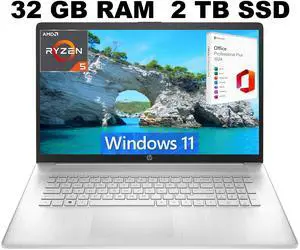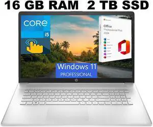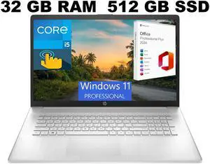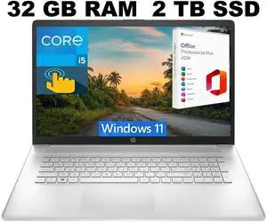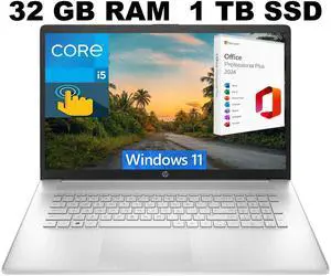HP 17t-cn300 Home & Business Laptop (Intel i7-1355U 10-Core, 32GB RAM, 1TB PCIe SSD, Intel Iris Xe, 17.3" 60 Hz Touch HD+ (1600x900), Fingerprint, Wifi, Bluetooth, Backlit KB, Webcam, Win 11 Pro)- Memory: 32GB