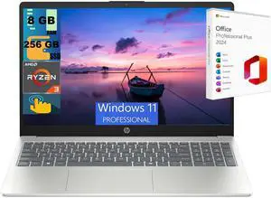 HP 15 Laptop, 15.6" HD Touchscreen, AMD Ryzen 3 7320U 4 cores Processor, AMD Radeon Graphics, 8GB DDR4 256GB PCIe SSD, Wi-Fi 6, Bluetooth 5.3, Windows 11 Pro,Office 2024 License
