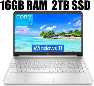 HP 15 Laptop, 15.6" Full HD Display, Intel Core i3-1115G4 Dual-Core 3.00GHz Processor, Intel UHD Graphics, 16GB DDR4  2TB PCIe SSD, Webcam, HDMI, Wi-Fi, Bluetooth, Windows 11