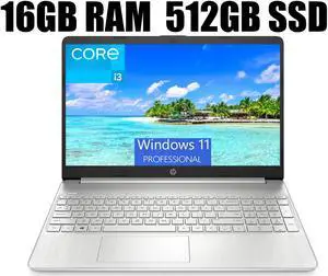 HP 15 Laptop, 15.6" Full HD Display, Intel Core i3-1115G4 Dual-Core 3.00GHz Processor, Intel UHD Graphics, 16GB DDR4  512GB PCIe SSD, Webcam, HDMI, Wi-Fi, Bluetooth, Windows 11 Pro