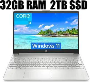 HP 15 Laptop, 15.6" Full HD Display, Intel Core i3-1115G4 Dual-Core 3.00GHz Processor, Intel UHD Graphics, 32GB DDR4  2TB PCIe SSD, Webcam, HDMI, Wi-Fi, Bluetooth, Windows 11