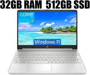HP 15 Laptop, 15.6" Full HD Display, Intel Core i3-1115G4 Dual-Core 3.00GHz Processor, Intel UHD Graphics, 32GB DDR4  512GB PCIe SSD, Webcam, HDMI, Wi-Fi, Bluetooth, Windows 11 Pro