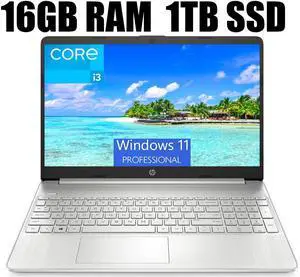 HP 15 Laptop, 15.6" Full HD Display, Intel Core i3-1115G4 Dual-Core 3.00GHz Processor, Intel UHD Graphics, 16GB DDR4  1TB PCIe SSD, Webcam, HDMI, Wi-Fi, Bluetooth, Windows 11 Pro