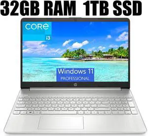 HP 15 Laptop, 15.6" Full HD Display, Intel Core i3-1115G4 Dual-Core 3.00GHz Processor, Intel UHD Graphics, 32GB DDR4  1TB PCIe SSD, Webcam, HDMI, Wi-Fi, Bluetooth, Windows 11 Pro