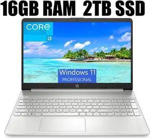 HP 15 Laptop, 15.6" Full HD Display, Intel Core i3-1115G4 Dual-Core 3.00GHz Processor, Intel UHD Graphics, 16GB DDR4  2TB PCIe SSD, Webcam, HDMI, Wi-Fi, Bluetooth, Windows 11 Pro