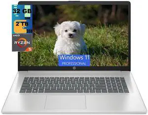 HP 17 Laptop, 17.3" FHD (1920 x 1080) Display, AMD Ryzen 5 7430U 6 cores Processor, AMD Radeon Graphics, 32GB DDR4 2TB PCIe SSD, Wi-Fi 6 and Bluetooth 5.3, Windows 11 Pro