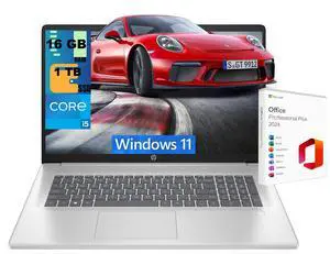 HP 17 Laptop, 17.3" FHD (1920 x 1080) Display, Intel Core i5-1334U 10 Cores Processor, Intel Iris Xe Graphics, 32GB DDR4 1TB PCIe SSD, Wi-Fi 6, Backlit Keyboard, Windows 11 Pro, Office 2024 License