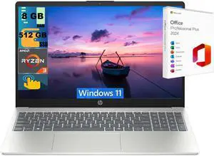 HP 15 Laptop, 15.6" HD Touchscreen, AMD Ryzen 3 7320U 4 cores Processor, AMD Radeon Graphics, 8GB DDR4 512GB PCIe SSD, Wi-Fi 6, Bluetooth 5.3, Windows 11 Home ,Office 2024 License