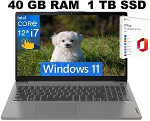 Lenovo IdeaPad 3 15 Laptop, 15.6" HD Touchscreen, Intel Core i3-1115G4 2 Cores Processor, Intel UHD Graphics, 40GB DDR4  1TB PCIe SSD, Webcam, Wi-Fi 6, Windows 11 ,Office 2024 License