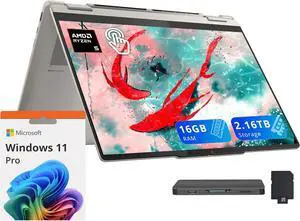 Lenovo Yoga 7 14" WUXGA 2-in-1 Touchscreen Laptop, AMD Ryzen AI 5 340, 16GB RAM, 2.16TB Storage(2TB SSD+160GB Docking Station), Backlit Keyboard, Fingerprint Reader, Copilot, Win 11 Pro, Seashell