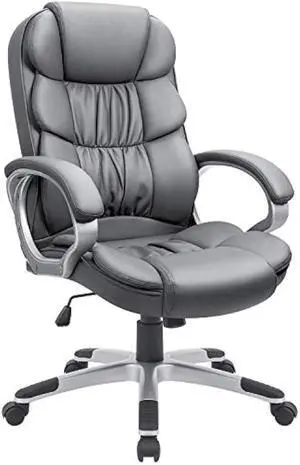 GUNJI Office Chair PU Leather High Back Executive Chair Ergonomic Computer Chair, Modern Adjustable Home Desk Chair Swivel Managerial Chair with Padded Armrests and Lumbar Support (Gray)