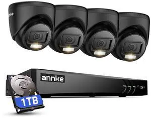 ANNKE H.265+ 8CH Security Camera System with Human/Vehicle Detection, 5-in-1 AI 3K DVR Recorder and 4PCS 2MP Indoor & Outdoor Turret Black Cameras, 100 ft Night Vision, Email Alert with Snap, 1TB HDD