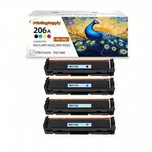 4 Pack New Black Cyan Magenta Yellow Toner cartridge (No Chip Included) For HP 206A W2110A - W2113A Compatible For Use With HP Color LaserJet Pro M255dw M255nw MFP M282nw 283fdn 283cdw 283fd