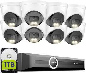SANNCE 2K 3MP PoE Security Camera System - 8CH 6MP Surveillance NVR with 8PCS 3MP HD Clear Full Color Night Vision Dome Cameras, IP67 Weatherproof, Audio Recording (1TB HDD)