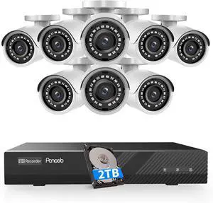 PoE Security Camera System 4K, 8X 8MP Wired Bullet IP PoE Cameras Outdoor Built-in Microphone, AI Human Vehicle Detection, 4K/8MP 8CH NVR 2TB HDD, Smart Color Night Vision, PB38F0808-8M
