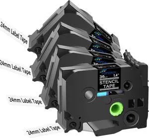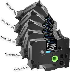 6PK Compatible with Brother Label 24mm STe-151 Mobile Solutions Non-Adhesive Stencil Tape STe151 ST151 Black on Clear 1" (24mm) x 9.8' (3m), for PT-D600 PT-D600VP PT-P700 Label Maker