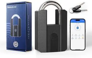 NexusLab Heavy Duty Smart Fingerprint Padlock with Key, IP67 Waterproof Bluetooth Outdoor Gate Lock, Anti-Theft App Control & Log Record, High Security Gym, Fence, Shed, Pool & Storage Unit Locks