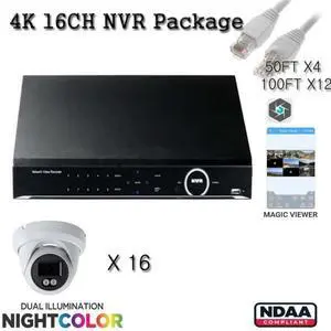 Eyemax Magic Viewer Series 16CH CCTV NVR with 16PCS 4K in/Outdoor Full Color IPC Network Camera Package