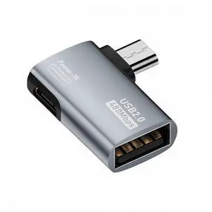 Micro USB 2.0 to Type-A Female OTG Host Adapter 90 Degree Left Angled with USB Power for Phone Tablet