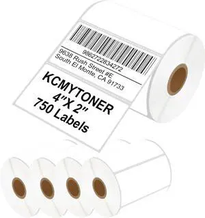 5 Rolls KCMYTONER 4" x 2" Direct Thermal Labels Barcode Address Paper Compatible for Zebra, Rollo and Most Other Thermal Label Printers, 750/Roll