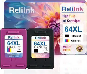 ReliInk Remanufactured 64XL Ink Cartridges Black/Color Replacement for HP 64XL Ink Cartridge Combo Pack HP Ink 64 for Envy 7855 7858 7155 7800 6252 6255 7100 7164 7200e 7955e 7900e Tango X Printer