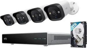 eufy PoE NVR Security System E41,24/7 Recording,Up to 16CH, 2TB HDD, 4 4K Turret Cams, Wired Outdoor Cam, 4K UHD, 122° FOV, Color Night Vision, AI Detection, Red and Blue Strobe