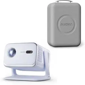 Aurzen BOOM mini Google TV Movie Projector with WiFi and Bluetooth, Voice Control, 20W Dolby Audio, Real-Time Focus, Smart Portable Outdoor Projector Bundle with EPP Carrying Case, Blue