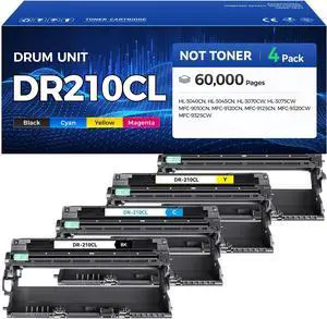 DR210CL Drum Unit (Not Toner) 4-Pack Replacement Compatible for Brother DR-210CL Imaging Drum for MFC-9325CW MFC-9125CN HL-3070CW 3040CN 3045CN 3075CW MFC-9320CW MFC-9120CN 9010CN Color Printer Black