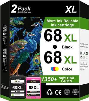 68 68XL 6100e 6500e Ink Cartridges Black and Tri Color Combo Pack for HP68XL Envy 6555e 6155e for HP Ink 68e Compatible with Envy Series Printers 6152e 6165e 6552e 6558e (2 Pack 1 Black, 1 Tri-Color)