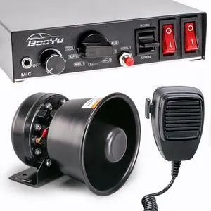 BooYu 12V 400W Police Emergency Siren for Vehicles Truck, 9 Tone Slim Speaker Horn Alarm PA System for Firefighter Ambulance [Handheld Microphone][2 x 10A Switches]