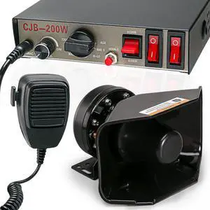 BooYu 12V 200W 9 Tones Police Warning Emergency Siren PA System [180° Design Speaker][125-135dB][Handheld Microphone][Hands-Free][2 x 10A Switches] for Firefighter Ambulance Vehicles Truck SUV ATV UTV