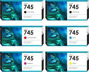 Remanufactured 745 Ink Cartridge 300ml Set (6-Pack,MBK/PBK/C/M/Y/CR) Compatible with F9K06A F9K05A F9K04A F9K03A F9K02A F9K01A Toner Cartridge for HP Designjet Z2600 Z5600 Printer