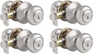 Probrico Entry Door Knobs with Lock, Keyed Alike Interior Exterior Door Locks in Brushed Nickel Finish, 4 Pack Stainless Steel Modern Entrance Locksets for Bedroom Office