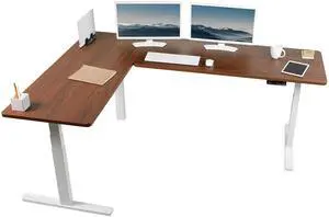 VIVO Electric Dual Motor 71 x 36 Standing Desk, Dark Walnut Top, White Frame