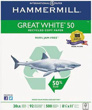 Great White 50 Recycled Copy Paper, 20-Lb., 8-1/2 X 11, White, 5000/Ca
