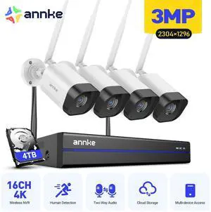 ANNKE Wireless Camera System, 16CH Expandable 4K Security NVR, 4Pcs 3MP Outdoor Cameras, 2-Way Audio, Dual-Band WiFi, Human Detection, IP66 Waterproof, 4TB HDD, Compatible with Alexa, 24/7 Protection