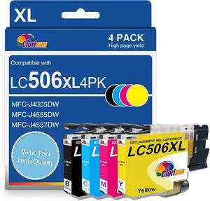 Palmtree LC406XL High Yield Compatible 4 Pack Ink Cartridge Set Replacement for Brother LC406 XL LC 406 to use with Brother MFC-J4335DW MFC-J6955DW MFC-J5855DW Printer (Black, Cyan, Magenta, Yellow)