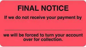 Billing Collection Labels, Fl Red - FINAL NOTICE, 3-1/4" X 1-3/4" (Roll of 250)