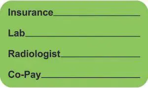 Insurance Labels, Insurance_Lab_Radiologist_Co-Pay_ Fluorescent Green, 1-1/2" x 7/8" (Roll of 250)